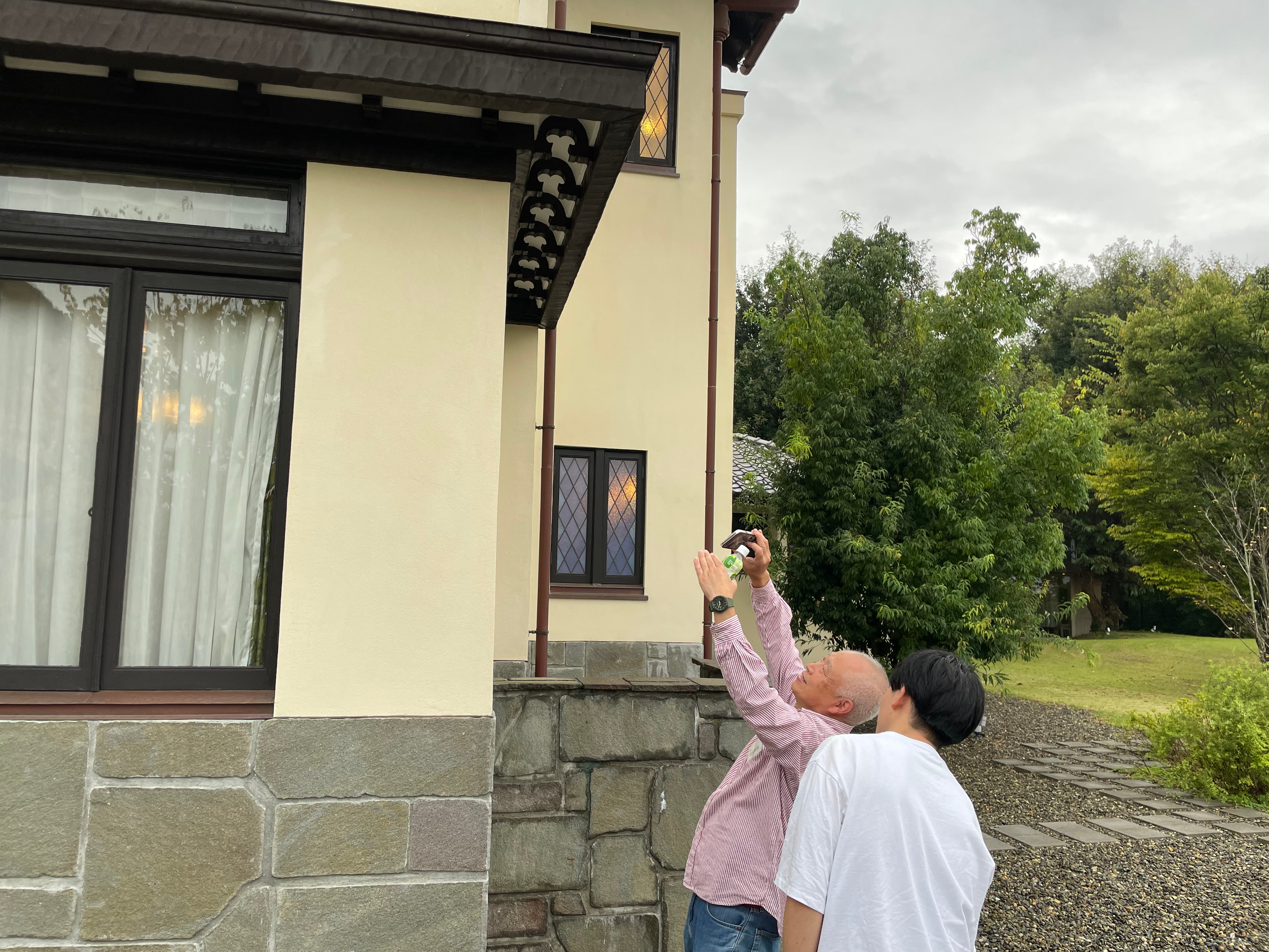 ▲外観写真の撮影は遠くから望遠を使ったほうが歪みが少ないとのことで、かなり引いた位置から撮影しています