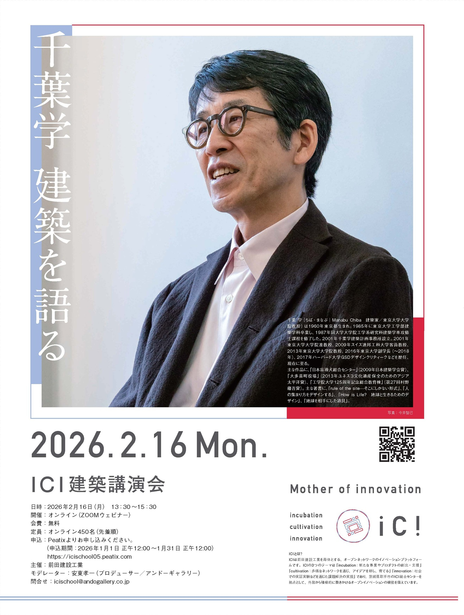 ICI建築講演会 (オンライン開催) 「千葉学 建築を語る」 (2月16日(月)開催)のご案内